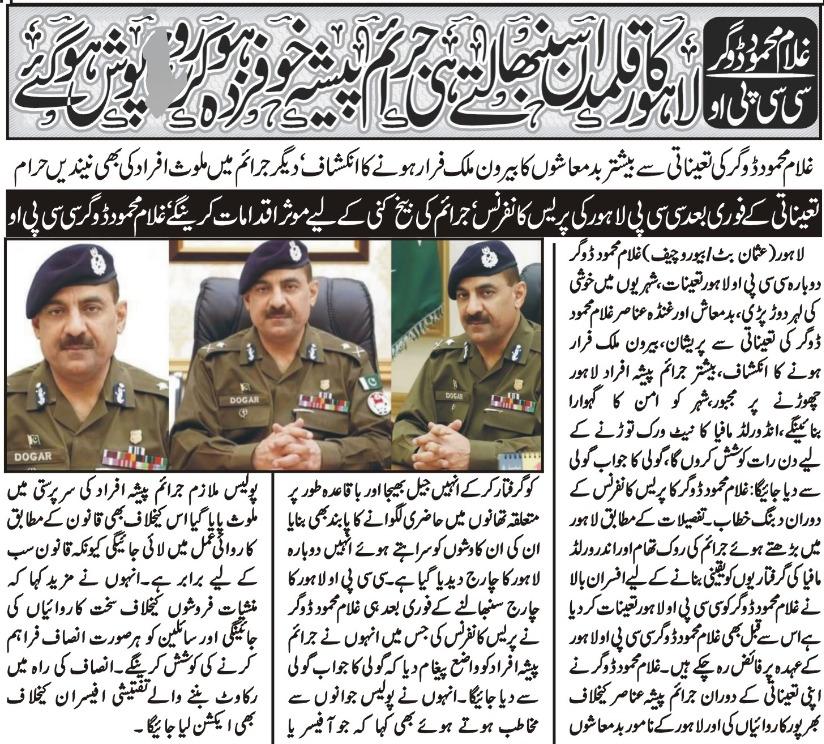 لاہور کا قلمدار سنبھالتے ہی جرائم پیشہ خوفزدہ ہوکر روپوش ہوگئے